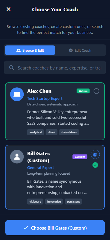Get instant, personalized advice for every area of your life. Chat with AI coaches who remember your conversations and give increasingly better guidance over time.
